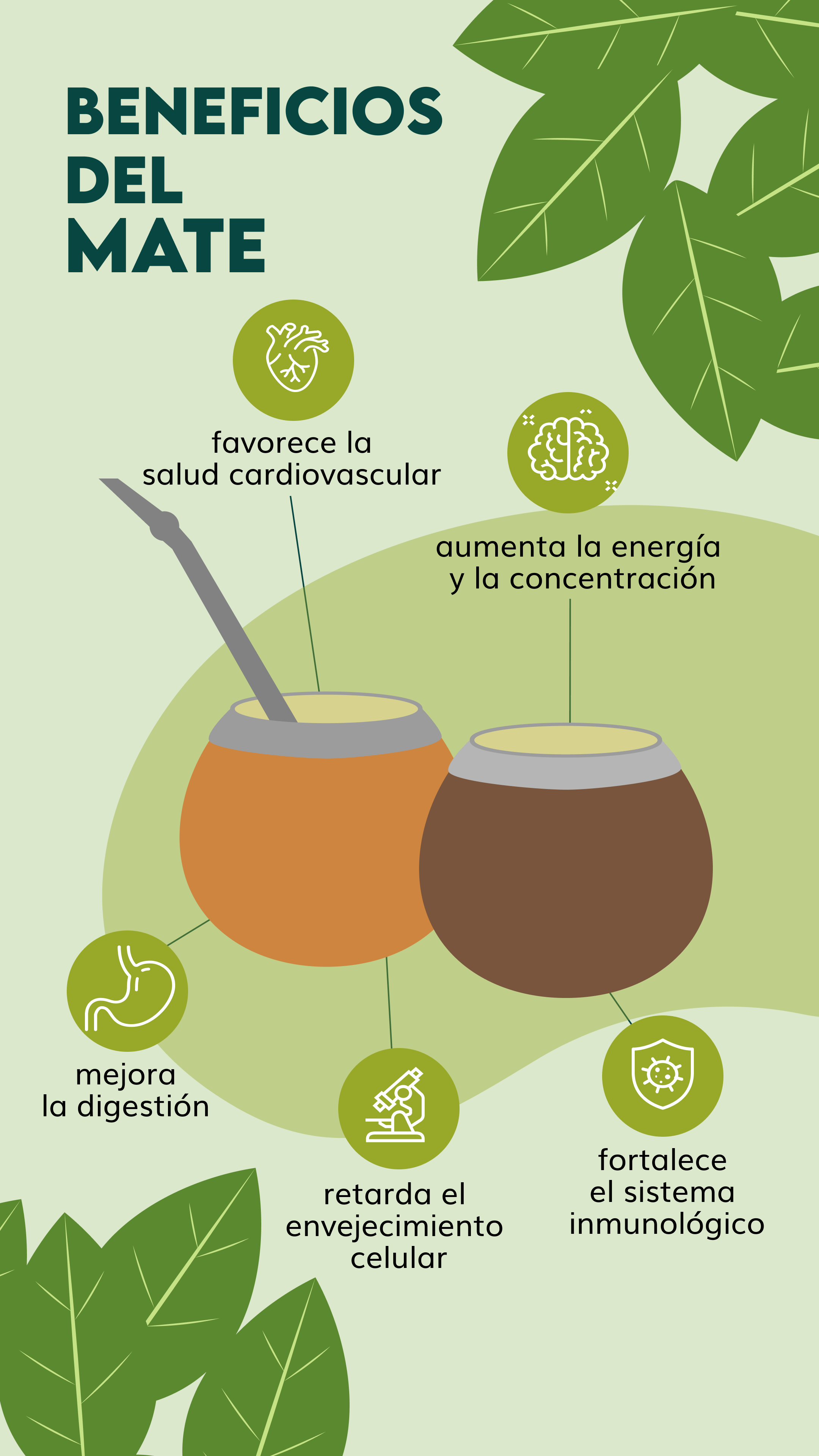 Los beneficios de la yerba mate van mucho más allá de un simple aumento de energía. Gracias a su riqueza en antioxidantes y otros nutrientes, se le atribuyen beneficios para: