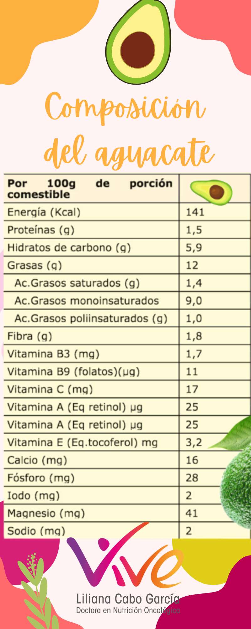 Nota: Estos valores son aproximados y pueden variar ligeramente según la variedad y la madurez del aguacate.