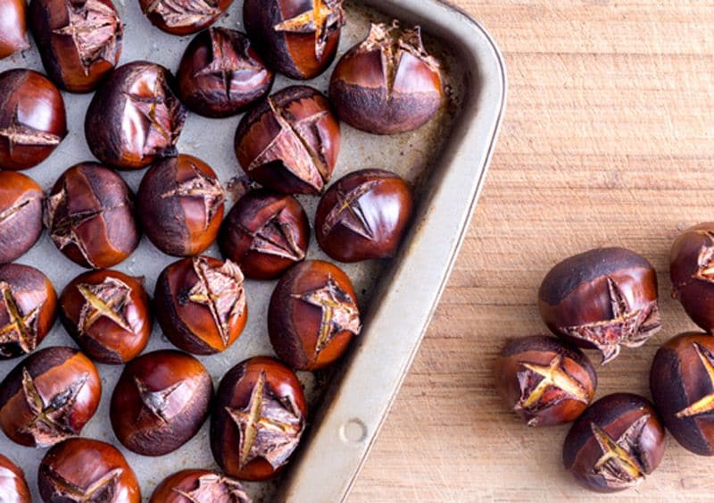 2. Castañas asadas con miel y especias: